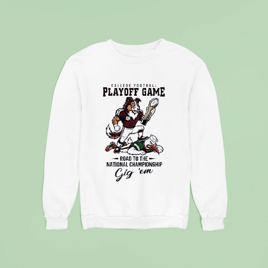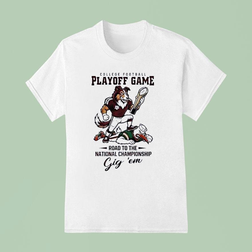 Casual cool, anytime wear with Texas Am Aggies Ncaa College Football Playoff Game Road To The National Championship Gig Em Mascot Shirt, the Texas A&M Aggies are ready to hit the road to the NCAA College Football Playoff, and they’re bringing along their iconic Gig Em mascot. Show your support for the team’s journey to the national championship with this must-have shirt. Gear up and join the Aggies on their road to victory!