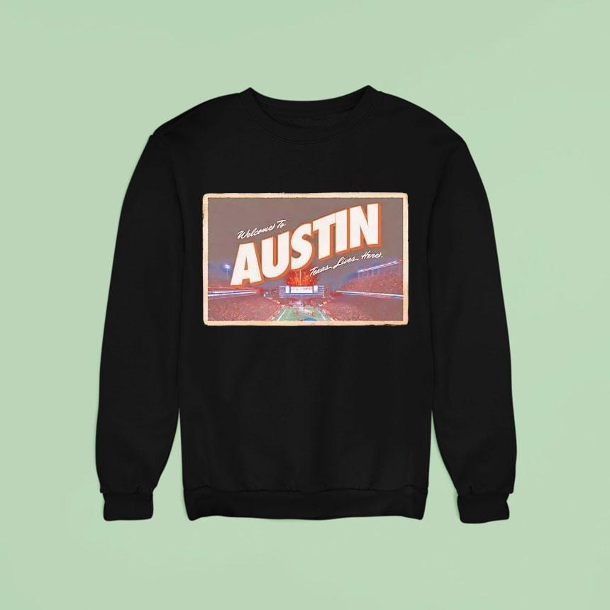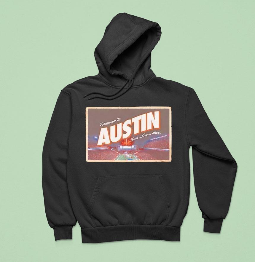 Style that stands out with Texas Longhorns Welcome To Austin Texas Lives Here Shirt, welcome to Austin, Texas – where the spirit of the Texas Longhorns runs deep and proud. Show your love for this iconic team and city with the “Texas Lives Here” shirt. Representing the heart and soul of Texas, this shirt is a must-have for any fan.