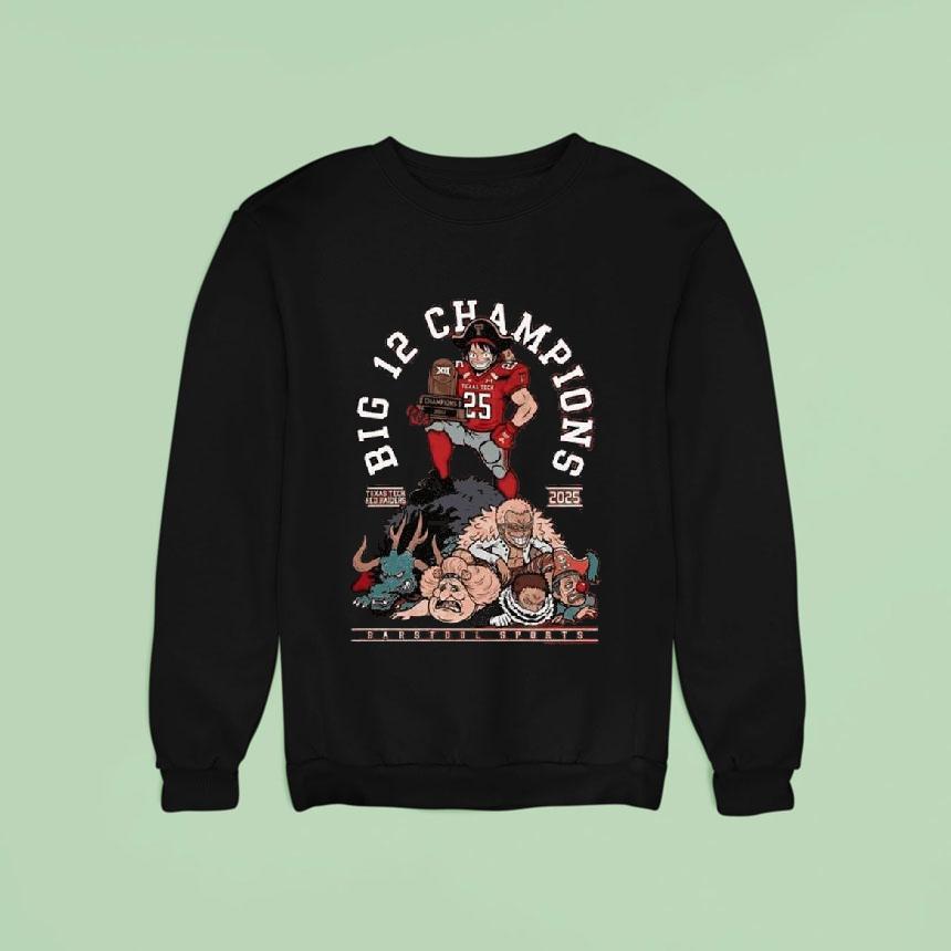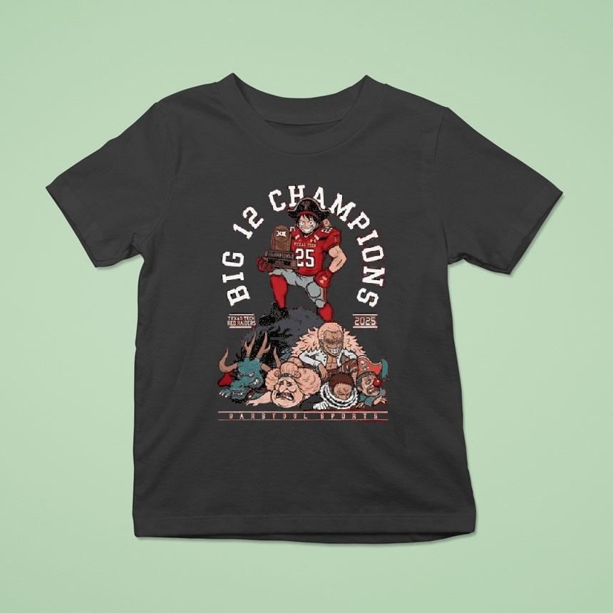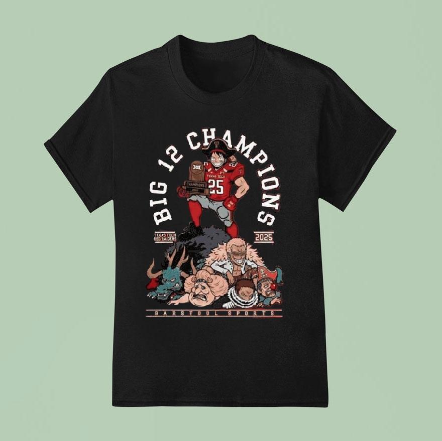 Classic tee, modern vibes with Texas Tech Red Raiders Big 12 Championship 2025 First Ever Conference Champions Luffy Raider Red One Piece Anime Shirt, in 2025, the Texas Tech Red Raiders made history as they claimed their first ever Big 12 Championship title. The team’s success was celebrated not only on the field, but also in the world of anime with the release of the iconic Luffy Raider Red One Piece shirt.