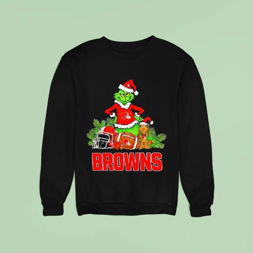 Style that stands out with The Grinch And Max Cleveland Browns Christmas Helmet Items Shirt, the holiday season is upon us and Cleveland Browns fans can show off their team pride in a unique way with The Grinch and Max Christmas helmet items shirt. This festive and playful design combines two beloved characters with the iconic football team, making it a perfect addition to any fan’s wardrobe.