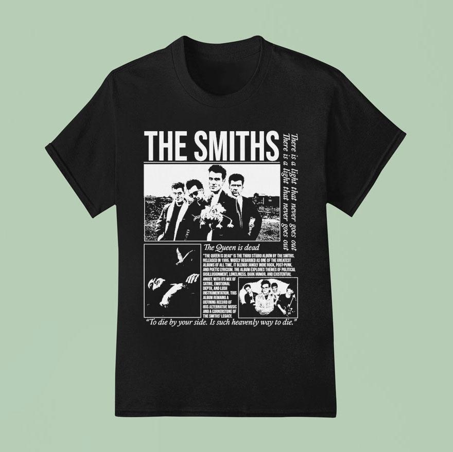 Effortless charm, everyday wear with The Smiths The Queen Is Dead To Die By Your Side Is Such Heavenly Way To Die Shirt, the Smiths’ iconic album, “The Queen Is Dead”, continues to captivate fans with its poetic lyrics and melancholic melodies. And now, with the release of the “To Die By Your Side” shirt, fans can proudly wear their love for the band and their iconic music.