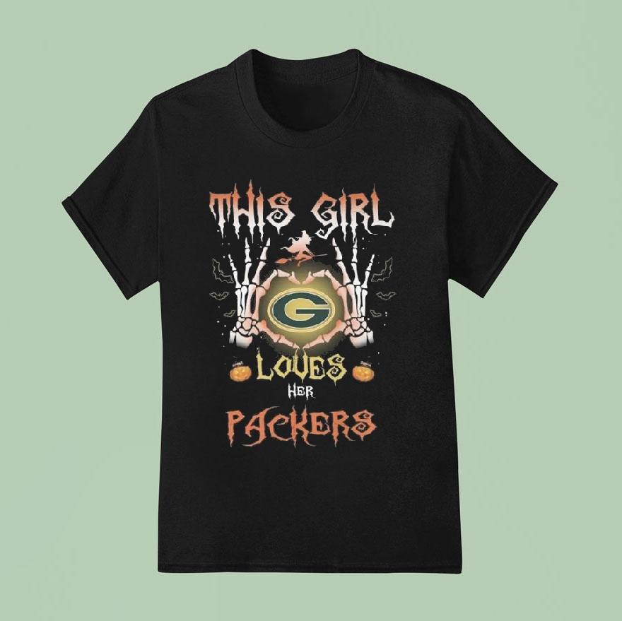 Style that stands out with This Girl Loves Her Green Bay Packers Skeleton Halloween Shirt, get ready to scream and shout for the Green Bay Packers with this spooky twist! This girl loves showing off her team spirit with a ghoulishly cool Skeleton Halloween shirt. Join her in cheering on the Pack while celebrating the most hauntingly fun holiday of the year.