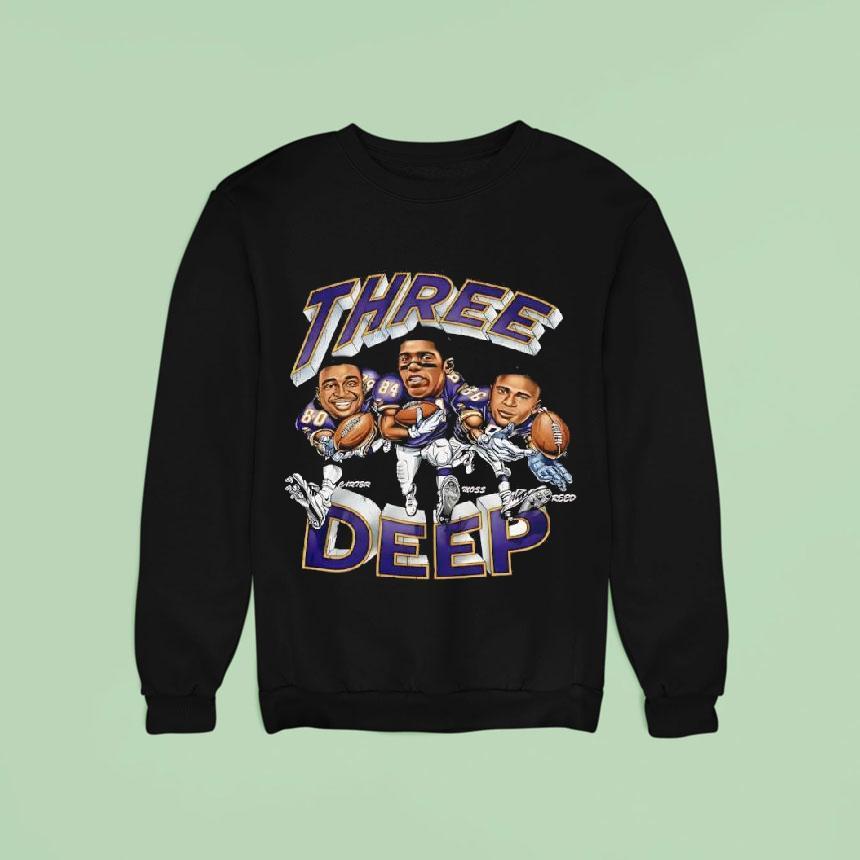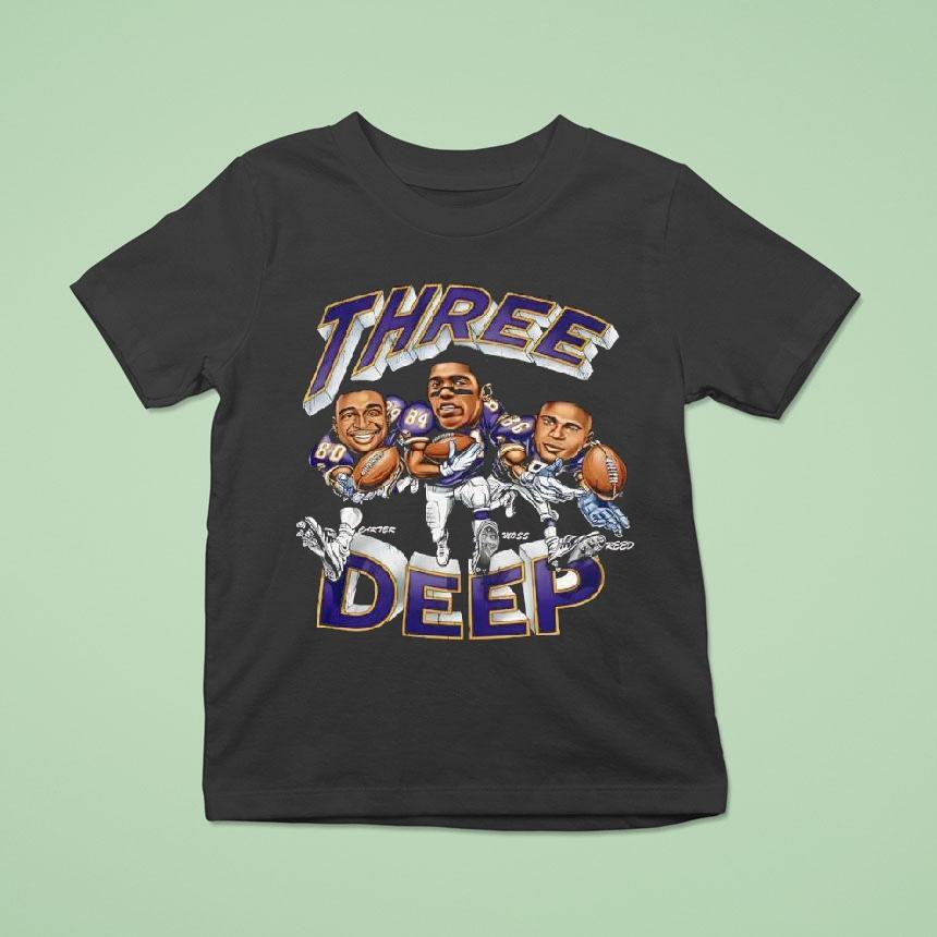 Casual flair, all occasions with Three Deep Jake Reed Randy Moss Cris Carter Graphic Shirt, get ready for some serious throwback vibes with a limited edition graphic shirt featuring the legendary trio of Jake Reed, Randy Moss, and Cris Carter. These three deep threats lit up the field and now you can honor their legacy with this must-have piece for any football fan.