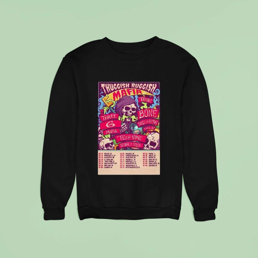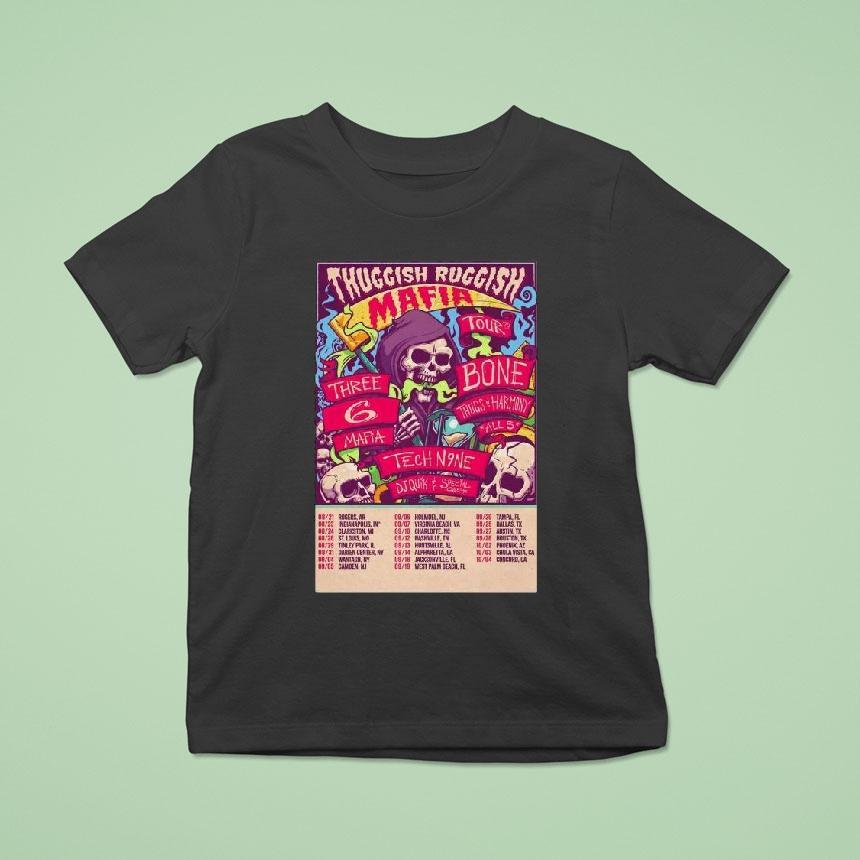 Dress it up, dress it down with Thuggish Ruggish Mafia Tour 2025 List Dates With Bone Thugs-n-harmony- Three 6 Mafia-tech N9ne And Dj Quik Shirt, join us on the ultimate thuggish ruggish ride as we take you through the hottest tour of 2025! Get ready to jam with hip-hop legends Bone Thugs-N-Harmony, Three 6 Mafia, Tech N9ne, and DJ Quik, as they bring their signature sounds to the stage. Don’t miss out on this epic experience!