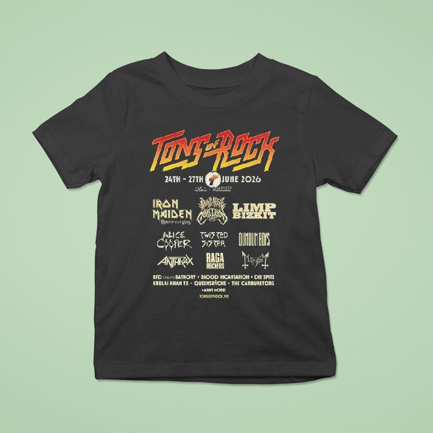 Easy-going style staple with Tons Of Rocks 2026 Oslo Norway On June 24-27 2026 Headliner Shirt, join us in Oslo, Norway on June 24-27 2026 for an unforgettable music experience! Our headliner shirt is adorned with the iconic Tons of Rocks logo, representing the abundance of talented artists and energetic crowds that come together for this epic festival. Don’t miss out on the rockin’ fun!