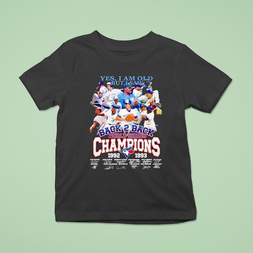 Chic comfort, all day with Toronto Blue Ray Yes I Am Old But I Saw Back 2 Back World Series Champions 1992 1993 Signatures Shirt, get ready to take a trip down memory lane with the Toronto Blue Rays back-to-back World Series wins in 1992 and 1993. Although years have passed, fans proudly wear their “Yes I Am Old But I Saw Back 2 Back World Series Champions 1992 1993 Signatures Shirt” as a reminder of those iconic moments.
