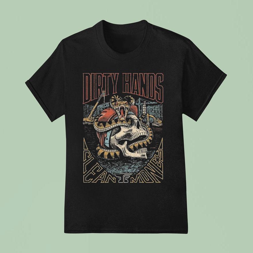 Effortlessly cool with Troll Co Dirty Hands Clean Money Rattled Skull Shirt, introducing Troll Co’s newest addition, the Dirty Hands Clean Money Rattled Skull Shirt! With its edgy design and quality material, this shirt is a must-have for any fashion-forward individual. Show off your rebellious side while keeping your hands clean and your wallet full.