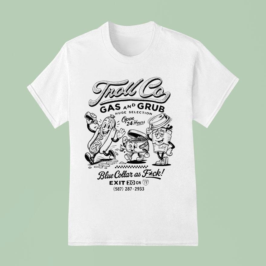 Wardrobe essential, always chic with Troll Co Gas And Grub Blue Collar As Fuck Hotdog Shirt, looking for a hotdog shirt that screams blue collar toughness? Look no further than Troll Co Gas And Grub! Designed for those who work hard and play hard, this shirt combines the grit of a blue collar worker with the fun of a gas station grub joint.
