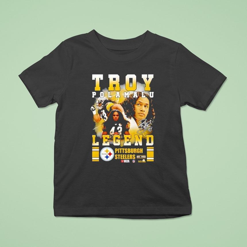 Elevate your casual look with Troy Polamalu Legend Pittsburgh Slers Signature Shirt, troy Polamalu is a name synonymous with legendary status in Pittsburgh. As a former safety for the Steelers, he left an indelible mark on the field with his signature playing style. Now, fans can show their admiration for the iconic player with the Troy Polamalu Legend Pittsburgh Steelers Signature Shirt.