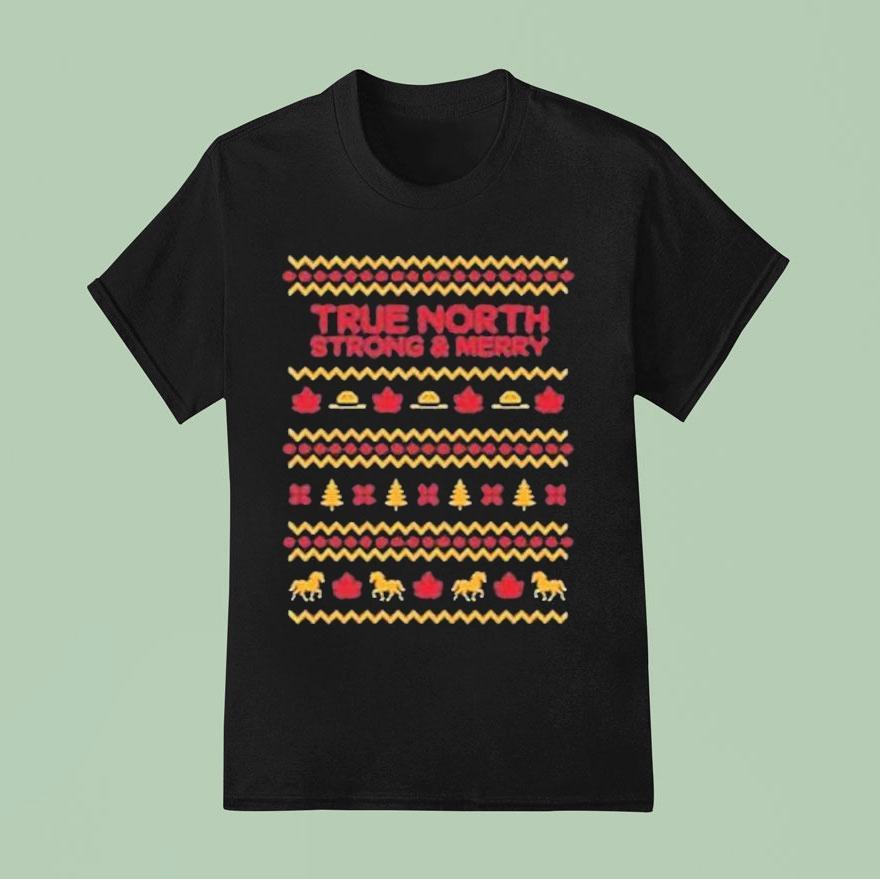 Classic tee, modern twist with True North Strong Merry Ugly Christmas Shirt, get in the holiday spirit with the perfect combination of Canadian pride and Christmas cheer. The True North Strong Merry Ugly Christmas Shirt is a festive and fun addition to any winter wardrobe. Spread joy and represent your country in style with this unique and quirky shirt.
