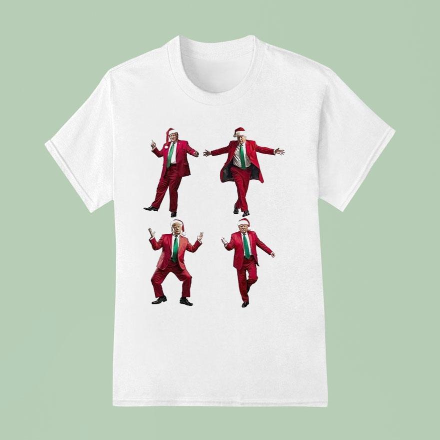 Chic simplicity, maximum comfort with Trump Dancing Holiday Christmas Shirt, get ready to add some festive cheer to your wardrobe with the Trump Dancing Holiday Christmas Shirt! Perfect for holiday gatherings or simply spreading some joy, this shirt features a playful design of President Trump dancing with a Santa hat on. Get yours now and spread some holiday spirit!