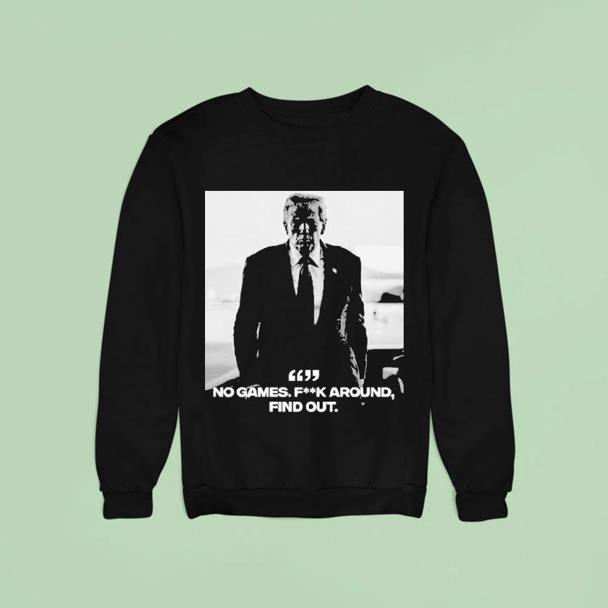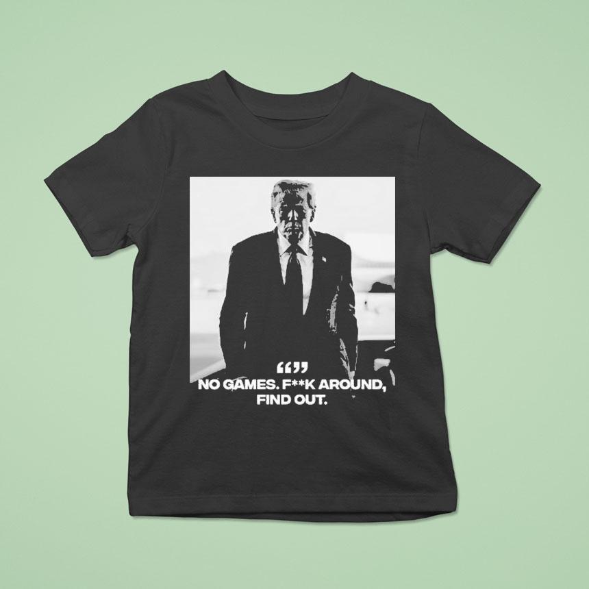 Classic charm, modern edge with Trump No Games Fuck Around Find Out Shirt, are you tired of politics as usual? Make a bold statement with the Trump No Games Fuck Around Find Out Shirt. Let everyone know you’re not playing games when it comes to supporting your political beliefs. Get your shirt today and make a statement.