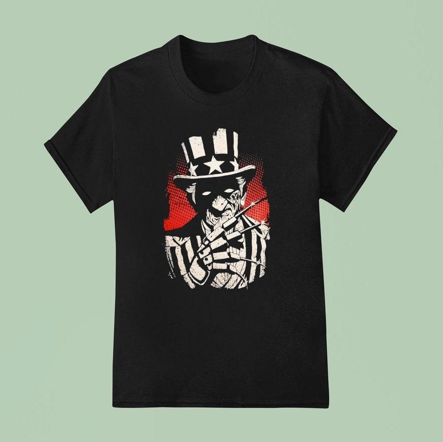 Classic look, contemporary feel with Uncle Kruger Style Uncle Sam Nightmare Shirt, step into a twisted American dream with Uncle Kruger Style’s latest creation – the Uncle Sam Nightmare shirt. This bold and provocative design combines the iconic image of Uncle Sam with the terrifying silhouette of Freddy Kruger, making it a must-have for any horror fan’s wardrobe.