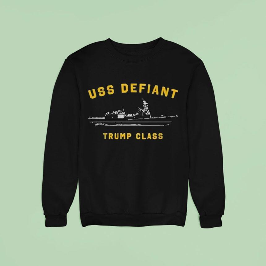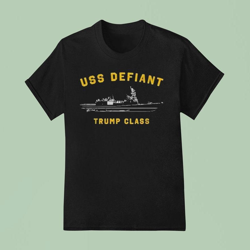 Versatile style, always chic with Uss Defiant Trump Class Boat Ship Shirt, “Step on board the iconic USS Defiant Trump Class boat ship with our sleek and stylish shirt. Show your pride for this legendary vessel and its fearless crew with our high-quality design. Perfect for any true fan or collector.”