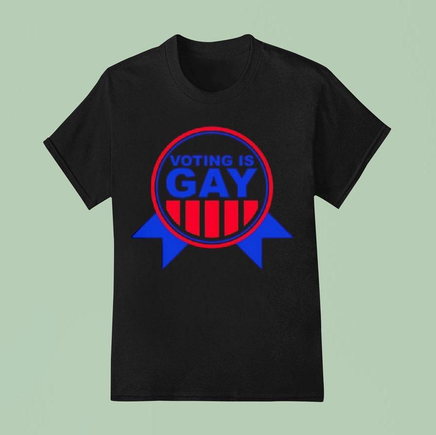 Express yourself with ease with Voting Is Gay Design Logo Shirt, “Get ready to rock the next election in style with our newest addition to the #VotingIsGay collection – the Design Logo Shirt! Show your support for equality and democracy with this bold and fashionable statement piece. Let your vote speak louder than words, and look good doing it.”