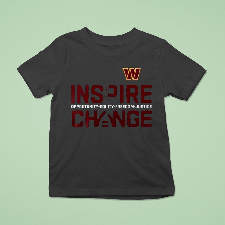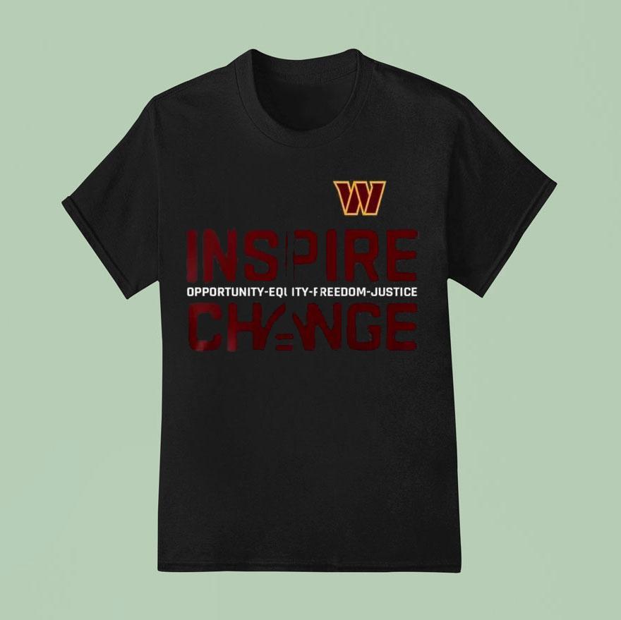 Wardrobe essential, always chic with Washington Commanders Inspire Change Opportunity Equity Freedom Justice Shirt, the Washington Commanders have taken a stand for social justice and equality with their new “Inspire Change” shirt. This powerful statement highlights the team’s commitment to promoting opportunities, equity, freedom, and justice on and off the field. Get your hands on this impactful shirt and join the movement for positive change.
