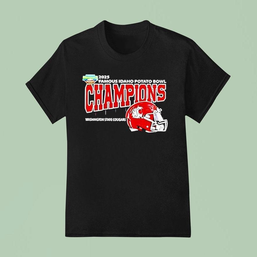 Effortless style, pure comfort with Washington State Cougars 2025 Famous Idaho Potato Bowl Champions Helmet Shirt, in 2025, the Washington State Cougars made history by winning the Famous Idaho Potato Bowl and claiming the coveted championship title. Fans and players alike proudly sported the commemorative helmet shirt, celebrating their team’s triumphant victory on the field.