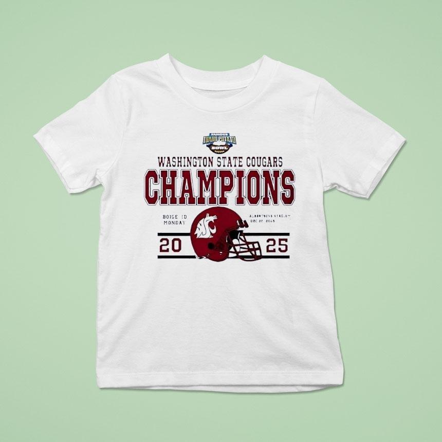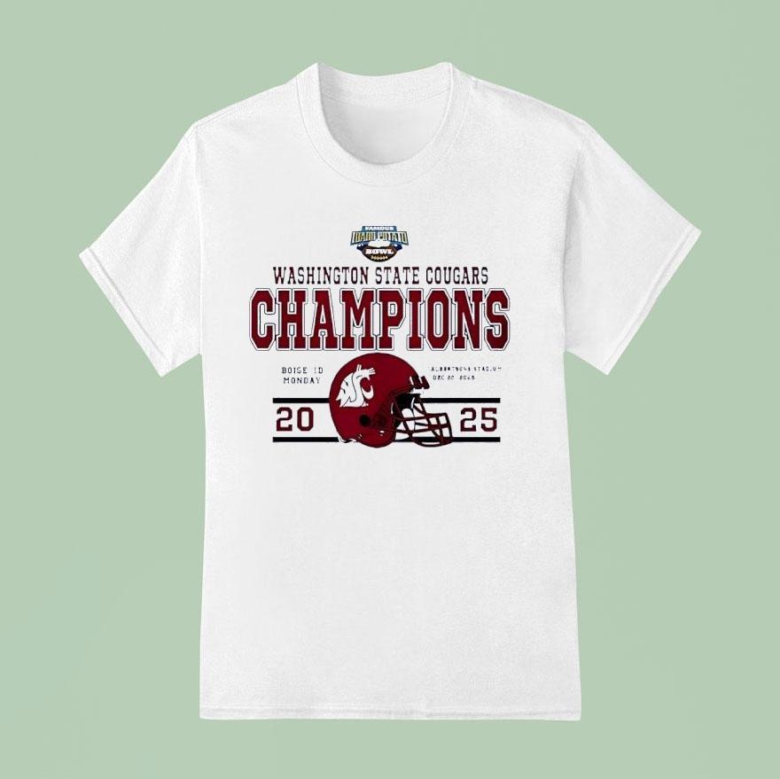 Casual chic, every day with Washington State Cougars Potato Bowl Champions 2025 Shirt, get ready to show off your team pride with the Washington State Cougars Potato Bowl Champions 2025 shirt! Celebrate their victorious win with this commemorative shirt featuring the team’s logo and championship year. Perfect for any die-hard fan or collector.