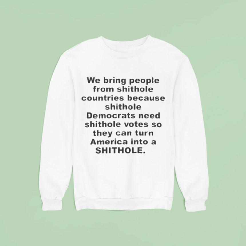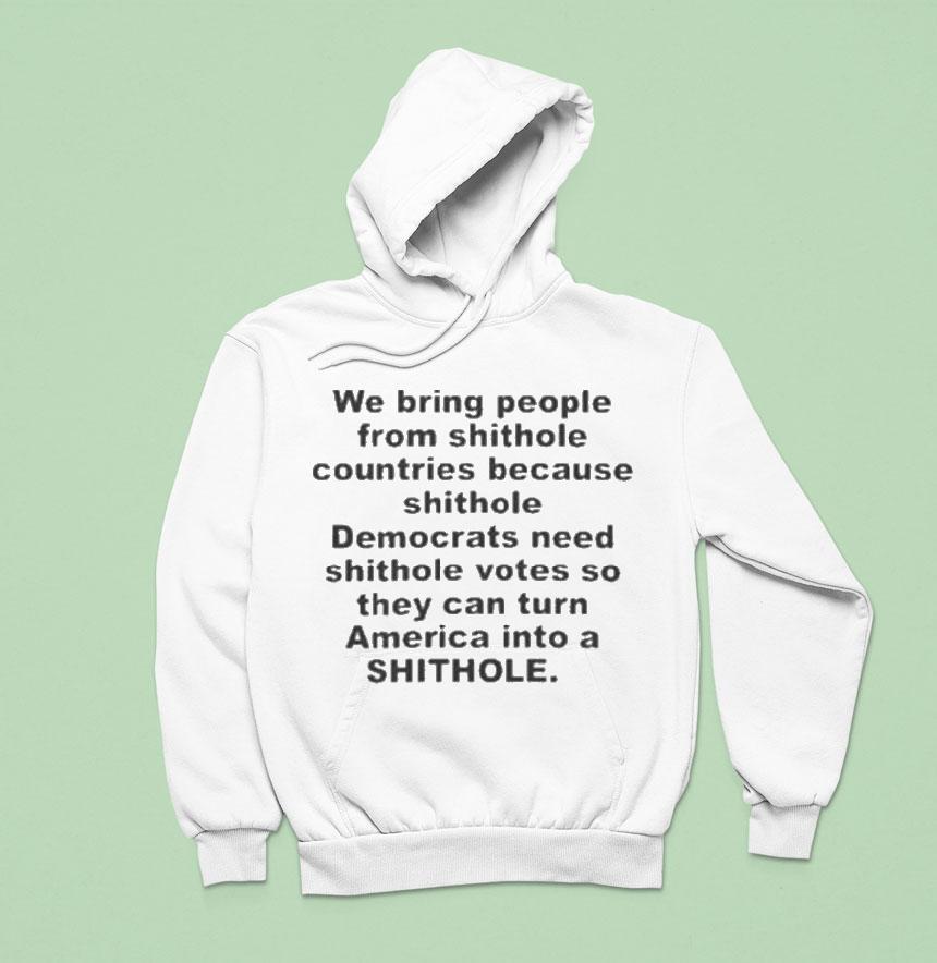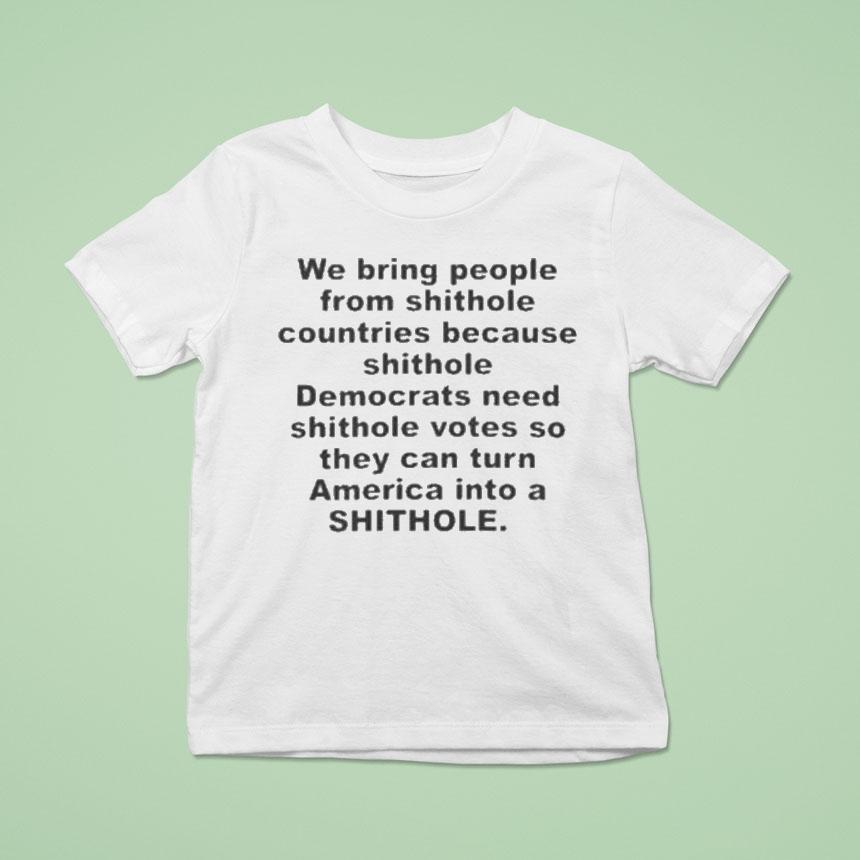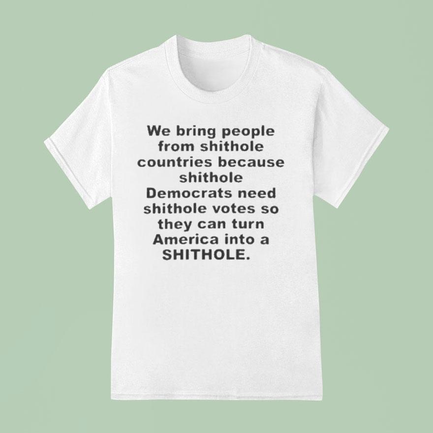 Chic minimalism, everyday wear with We Bring People From Shithole Countries Because Shithole Democrats Need Shithole Votes So They Can Turn America Into A Shithole Shirt, in today’s political climate, the phrase “shithole countries” has become a controversial topic. However, some individuals believe that bringing people from these nations can benefit the Democratic party by securing votes. But at what cost? Could this ultimately lead to turning America into a “shithole” shirt?