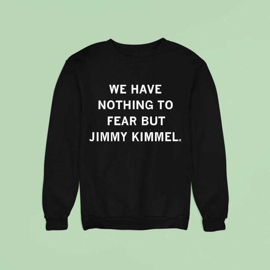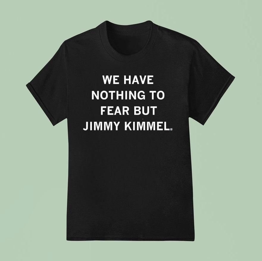 Uncomplicated elegance with We Have Nothing To Fear But Jimmy Kimmel Shirt, fear not, for we have the perfect shirt to sport that will ward off any anxiety or worry. Our “We Have Nothing To Fear But Jimmy Kimmel” shirt is a clever and humorous way to remind ourselves to take life less seriously. So let’s embrace the lightheartedness and spread some laughter.