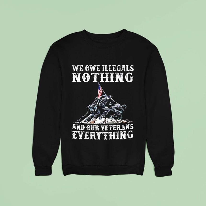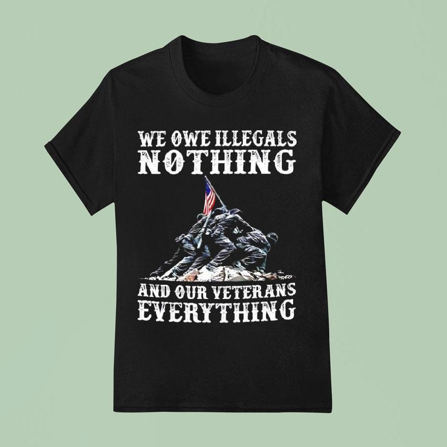 Wear it your way with We Owe Illegals Nothing And Our Veterans Everythings Shirt, there is a popular saying that goes, “We Owe Illegals Nothing and Our Veterans Everythings.” This powerful statement highlights the importance of prioritizing the needs of our veterans over those who have entered our country illegally. And now, this message is being proudly displayed on a new t-shirt design.