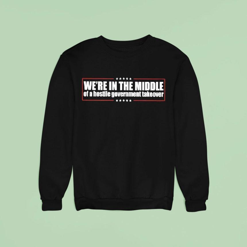 Dress it up or down with We’re In The Middle Of A Hostile Governmetn Takeover Shirt, in the midst of political unrest, the threat of a hostile government takeover looms over us. In response, many take a stand and proudly wear the “We’re In The Middle Of A Hostile Government Takeover” shirt, a symbol of resistance and unity against tyranny.