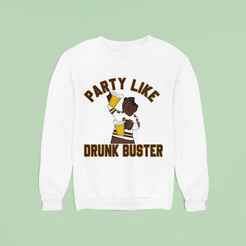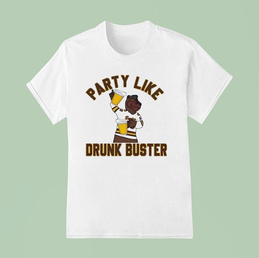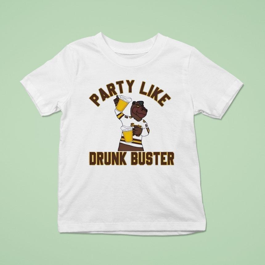 Simple style, bold impact with Western Michigan Broncos Hockey Party Like Drunk Buster Shirt, get ready to cheer on the Western Michigan Broncos Hockey team in style with the new Drunk Buster Shirt! Perfect for any party or game day, this shirt will have you and your friends looking and feeling like true fans while enjoying some drinks.