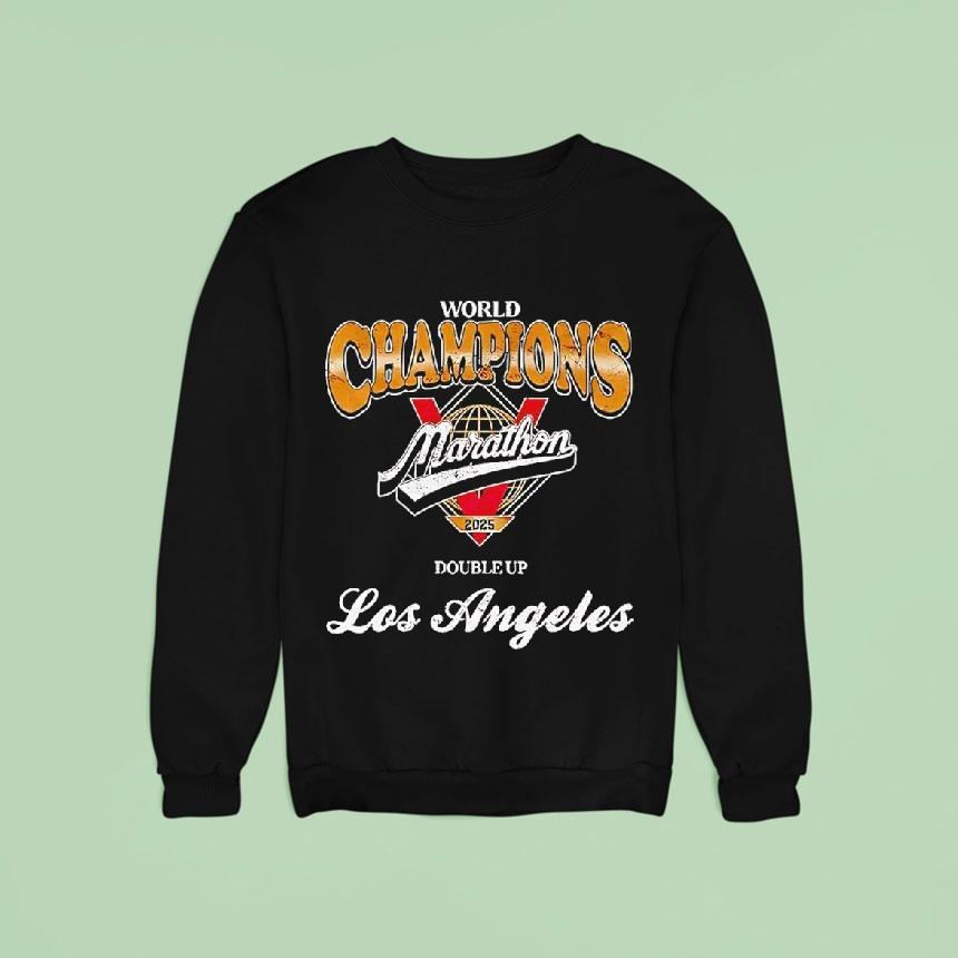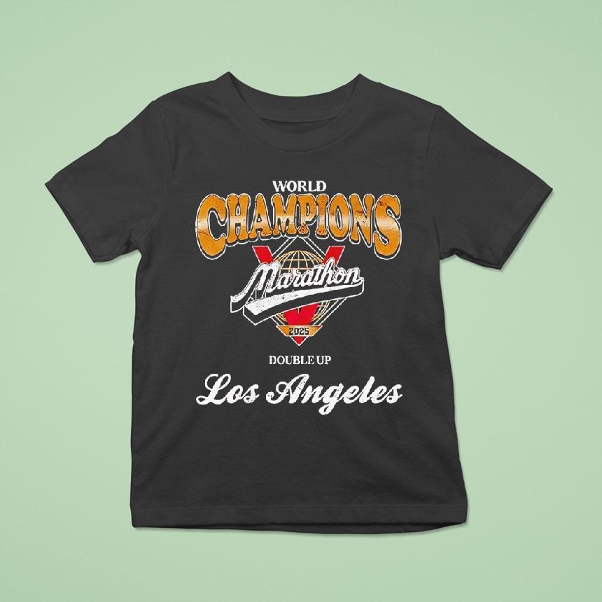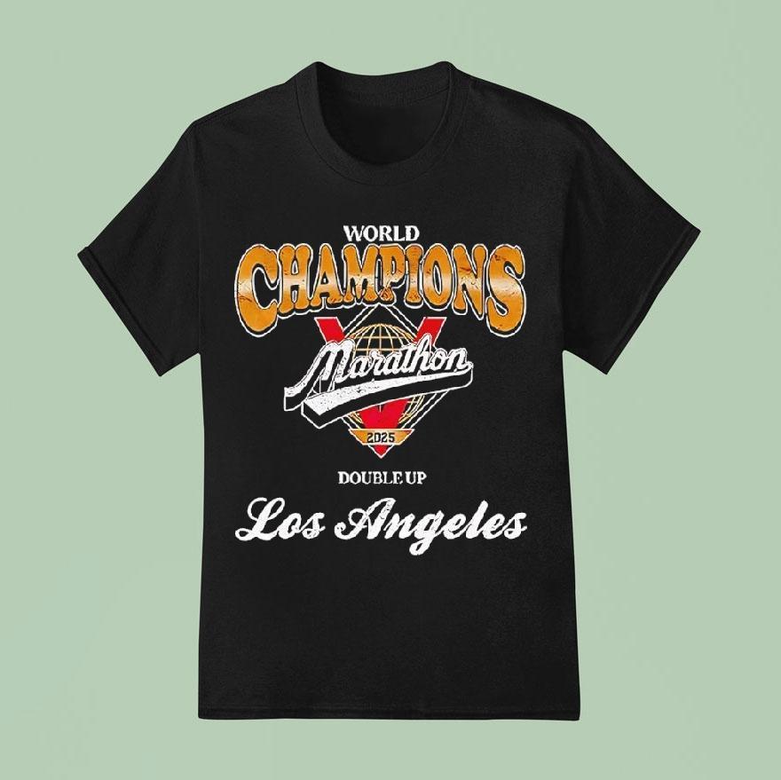 Chic and comfortable with World Champions Marathon Los Angeles Double Up 2025 Shirt, get ready to double up on style with the new World Champions Marathon Los Angeles Double Up 2025 Shirt! Show off your love for running and your city as the world’s top athletes compete in the ultimate race. Don’t miss out on this exclusive gear for the double championship year.