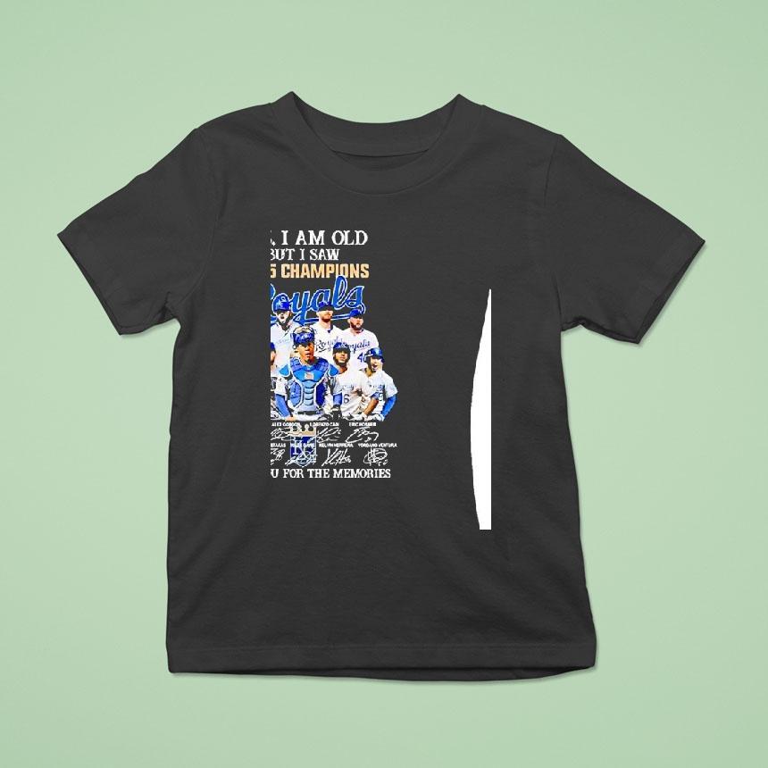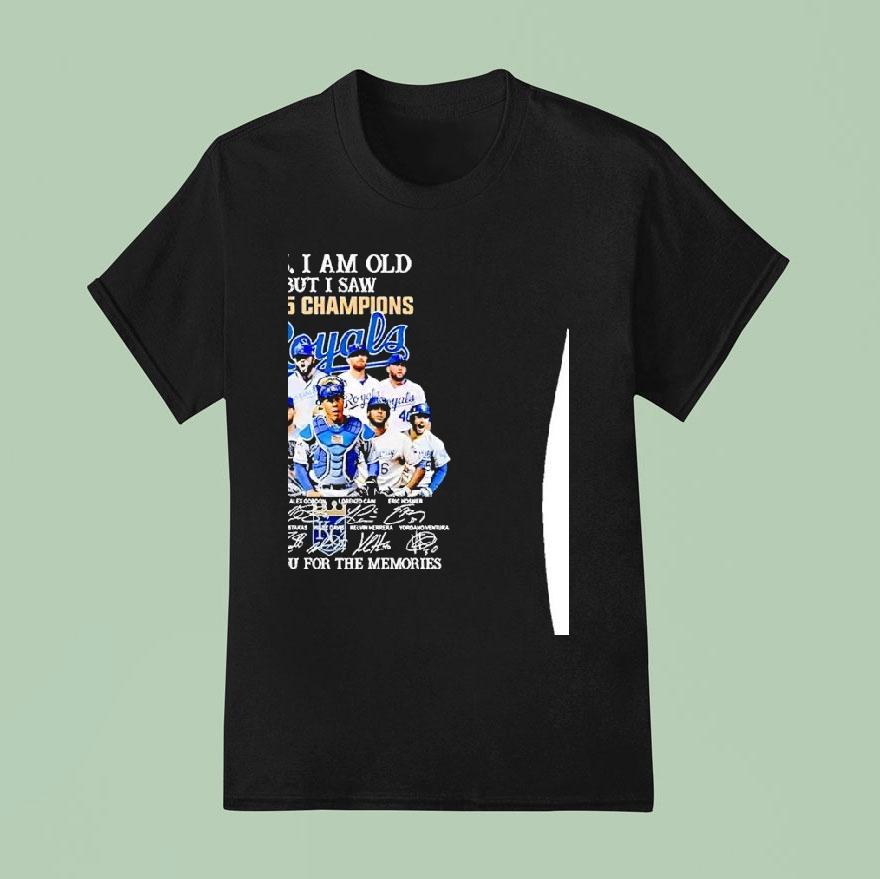 Your style, your tee with Yes I Am Old But I Saw 2015 Champions Kansas City Royals Players Signatures Thank You For The Memories Shirt, as a die-hard fan of the Kansas City Royals, I may be considered old, but my love for the team remains strong. In fact, I proudly wear my 2015 Champions Kansas City Royals Players Signatures Thank You For The Memories shirt, adorned with the signatures of the iconic players from that unforgettable season.