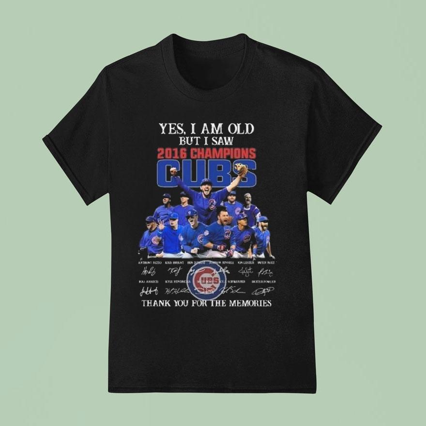 Versatile fashion, timeless appeal with Yes I Am Old But I Saw 2016 Champions Chicago Cubs Players Signatures Thank You For The Memories Shirt, as I rummaged through my closet, I stumbled upon a worn and faded shirt with the words “2016 Champions Chicago Cubs” and players’ signatures. Yes, I am old, but I proudly wore that shirt, filled with memories of an unforgettable season. Thank you, Cubs, for the memories.