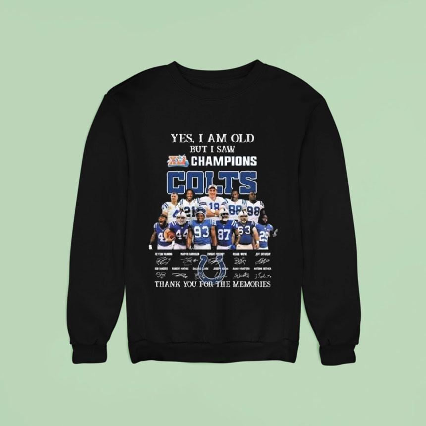 Casual chic, timeless appeal with Yes I Am Old But I Saw Xli Champions Indianapolis Colts Players Signatures Thank You For The Memories Shirt, as I hold this cherished shirt close to my heart, I am reminded of the unforgettable memories I have with it. Signed by the iconic Indianapolis Colts players, it serves as a reminder of their greatness and the legacy they left behind. Yes, I am old, but I saw XLl Champions.