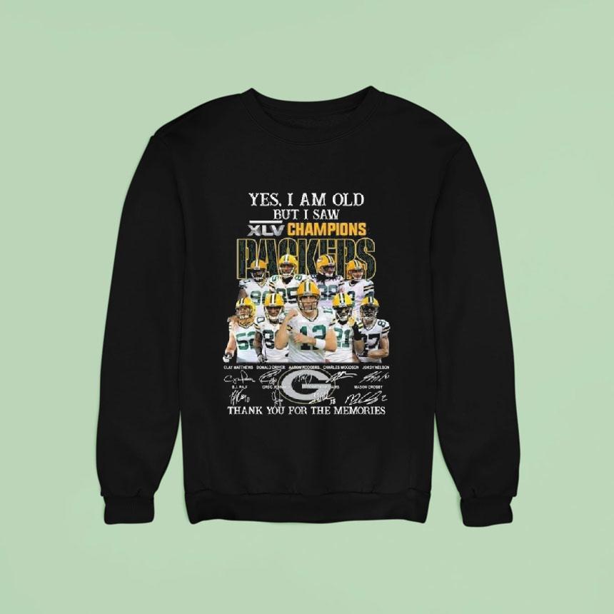 Simple style, bold impact with Yes I Am Old But I Saw Xlv 2010 Champions Green Bay Packers Players Signatures Thank You For The Memories Shirt, as the years pass and I grow older, I fondly recall my cherished memories as a die-hard fan of the Green Bay Packers. Yes, I may be old, but I proudly wear my XLV 2010 Champions Thank You For The Memories shirt, adorned with the signatures of my beloved players.