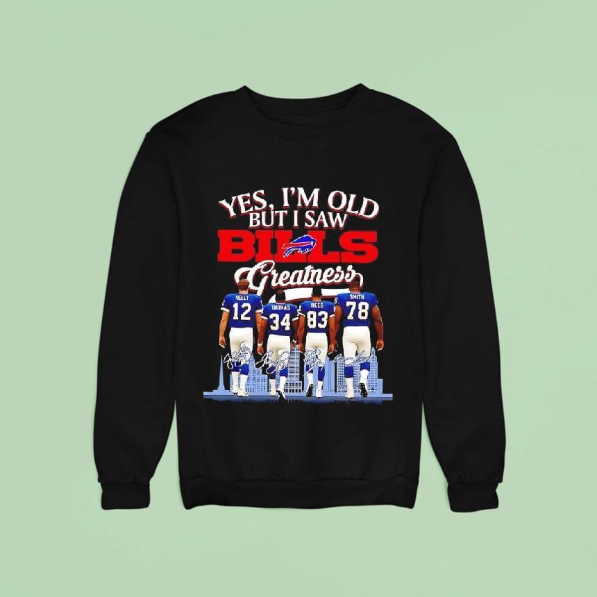 Dress it up or down with Yes I;m Old But I Saw Buffalo Bills Kelly Thomas Reed Smith Greatness Signatures Shirt, as I look back on my long-standing love for the Buffalo Bills, I can’t help but reminisce about the incredible players that have graced their field. From Kelly to Thomas to Reed Smith, their greatness lives on through more than just their jerseys, but also through the iconic signatures on my cherished Bills shirt.