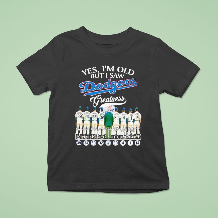 Simple sophistication, all day with Yes I’m Old But I Saw Los Angeles Dodgers Greatness Signatures Shirt, as a lifelong fan of the Los Angeles Dodgers, it’s safe to say that I’ve seen my fair share of greatness on the team. And while I may be getting up there in age, nothing brings back memories like my cherished Los Angeles Dodgers Greatness Signatures shirt.