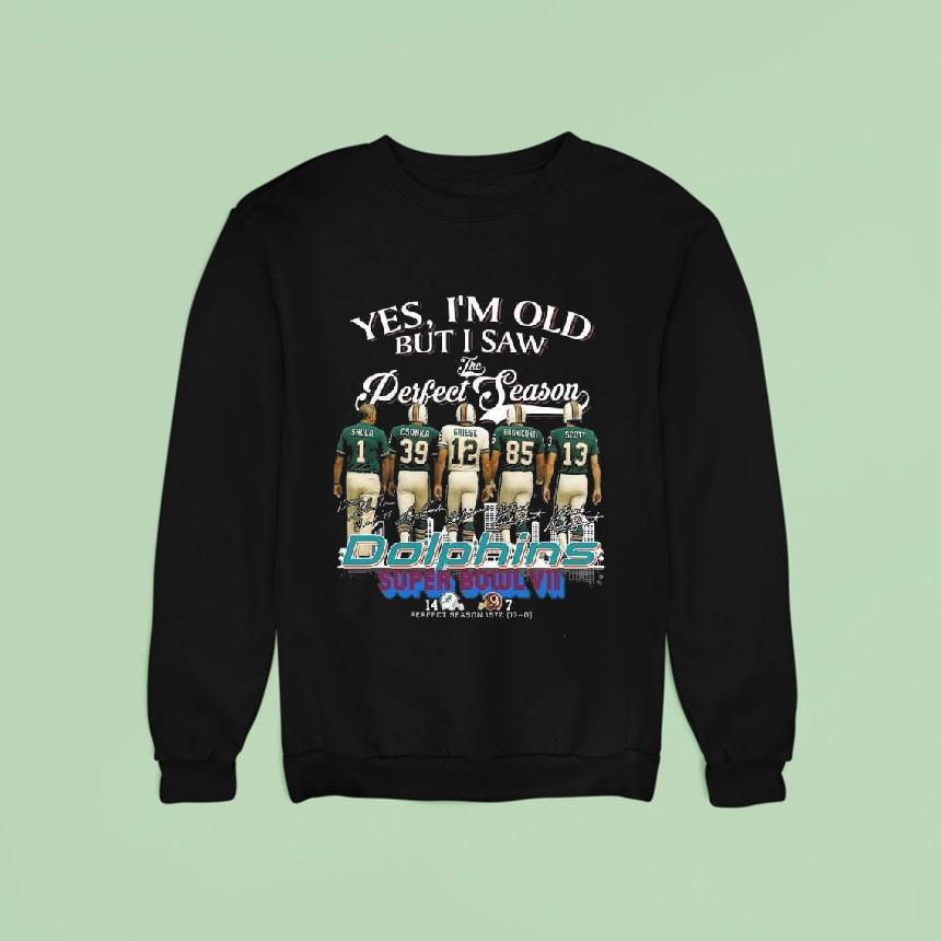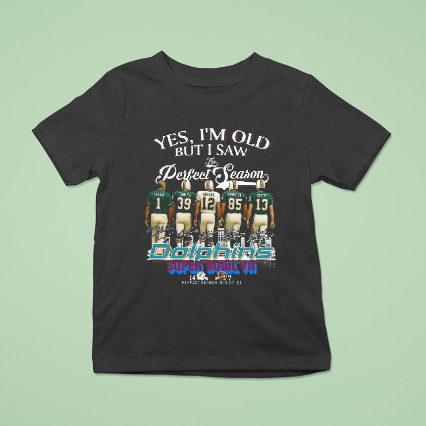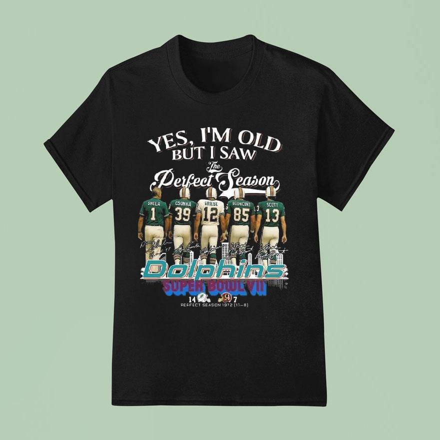 Easy-going style staple with Yes I’m Old But I Saw Miami Dolphins Perfect Season 1972 Legends Signatures Shirt, if you’re a true Miami Dolphins fan, you’ll appreciate the value of the iconic 1972 perfect season. And if you were lucky enough to witness it firsthand, flaunt your pride with the Miami Dolphins Legends Signatures Shirt. Because even though you may be old, you witnessed a legendary moment in football history.