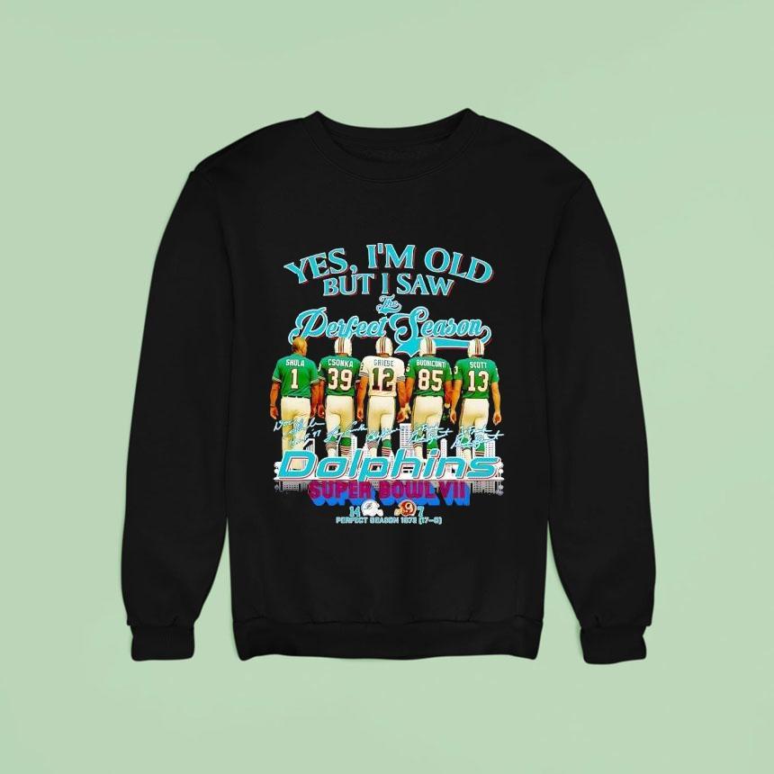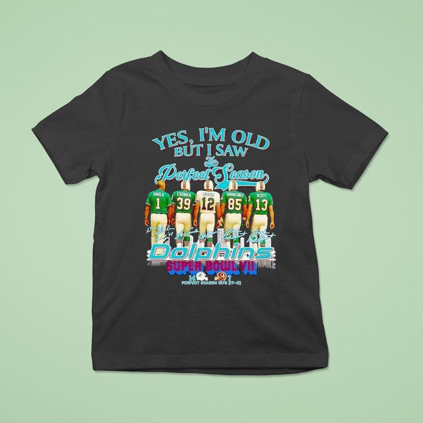 Casual cool, anytime wear with Yes I’m Old But I Saw Miami Dolphins Perfect Season Super Bowl City Skyline Signatures Shirt, as I proudly sport my Miami Dolphins Perfect Season Super Bowl City Skyline Signatures Shirt, I can’t help but reflect on the memories of witnessing their epic undefeated season. Yes, I may be old now, but I’ll always cherish being a part of that legendary team and city.