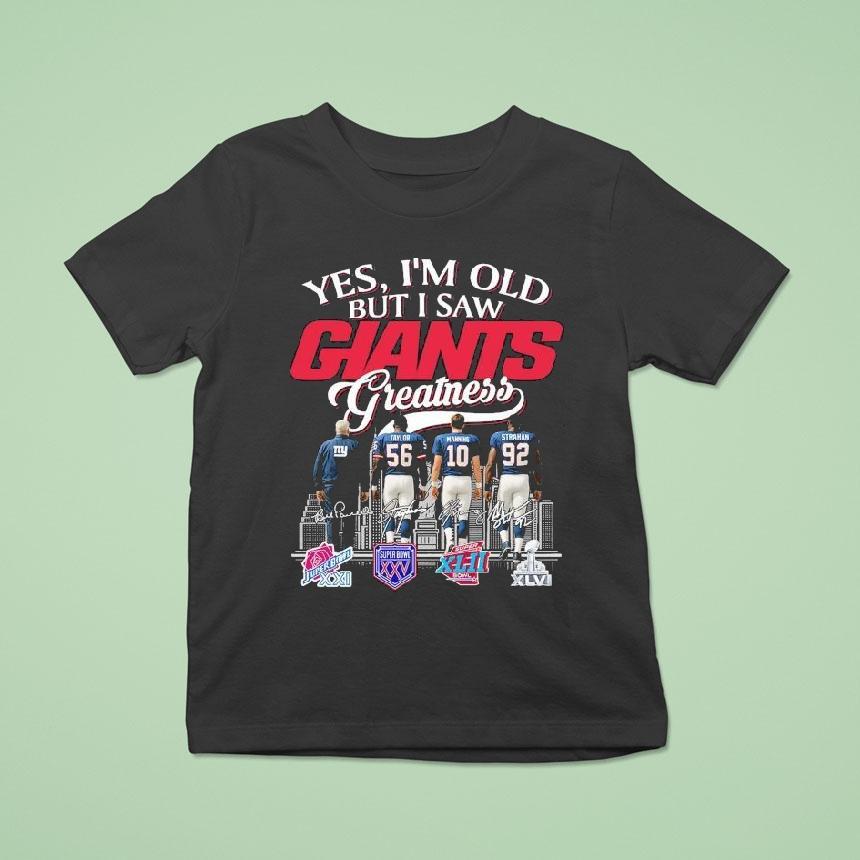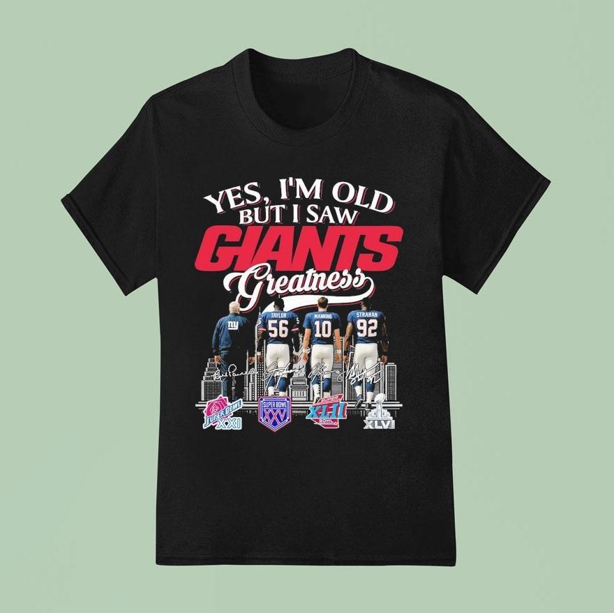 Your go-to casual choice with Yes, I’m Old But I Saw New York Giants Greatness Legends Signatures Shirt, yes, I’m old, but I have a piece of New York Giants history hanging in my closet. It’s my prized possession – a shirt adorned with the signatures of some of the greatest players to ever don the blue and white. Let me take you on a journey through the greatness of the Giants.