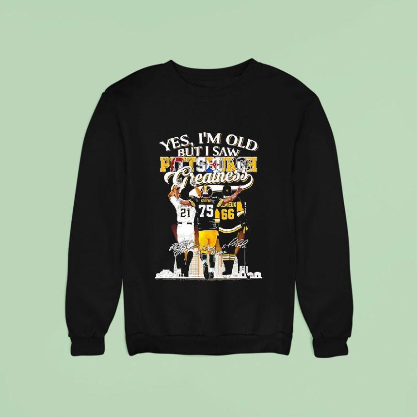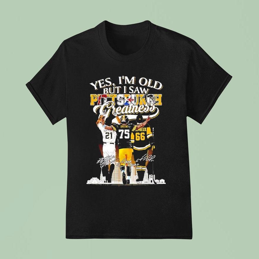 Wear it, love it, repeat with Yes I’m Old But I Saw Pittsburgh Athletes Greatness Clemente Greene Lemieux Signatures Shirt, as a die-hard sports fan, I’ve been lucky enough to witness some of the greatest athletes in Pittsburgh’s history. And while I may be old, I proudly sport my Clemente, Greene, and Lemieux signatures on my shirt as a reminder of their greatness.