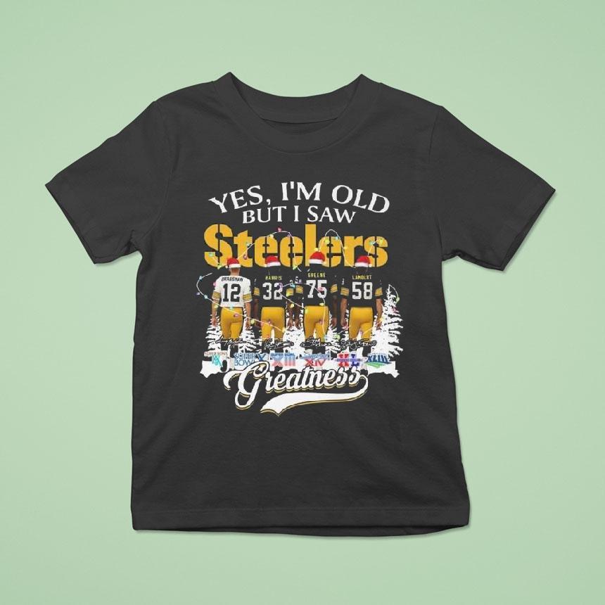 Casual luxury, anytime wear with Yes I’m Old But I Saw Pittsburgh Slers Greatness Players Signatures Merry Christmas 2025 Shirt, as I sit here wearing my Pittsburgh Steelers Merry Christmas 2025 shirt, memories flood my mind of the great players who have graced the field over the years. Yes, I may be old, but I proudly display their signatures, a reminder of their unmatched greatness.
