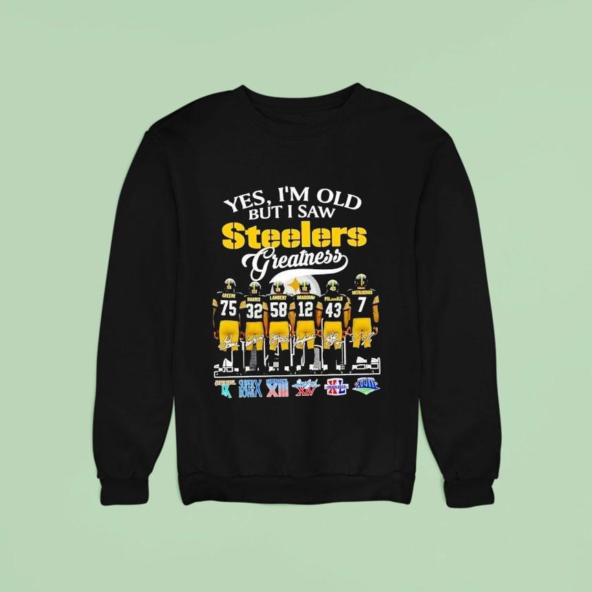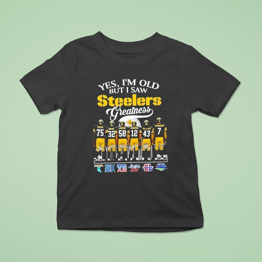 Soft, breathable, and stylish with Yes I’m Old But I Saw Slers Greatness Super Bowl Signatures Shirt, “Age may have slowed me down, but it hasn’t diminished my memory of witnessing the iconic Slers’ greatness on the field. And now, with the Super Bowl Signatures Shirt, I can proudly display my admiration for the legend and relive those unforgettable moments.”