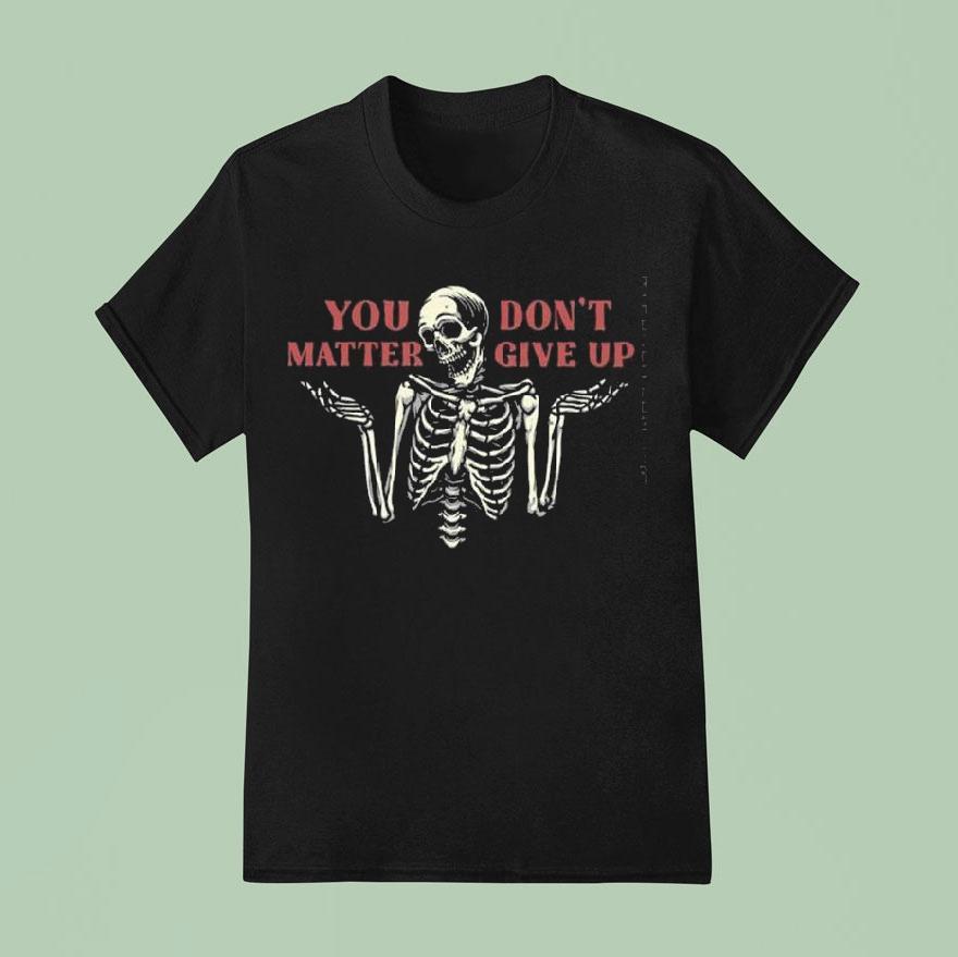 Casual flair, all occasions with You Don’t Matter Give Up Skeleton Shirt, looking for a shirt that perfectly captures your “don’t care” attitude? Look no further than the You Don’t Matter Give Up Skeleton shirt! Embrace your inner rebel with this bold and edgy design that is sure to make a statement.