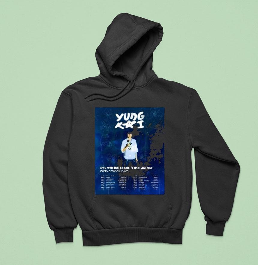 Style that suits you with Yung Kai Stay With The Ocean I’ll Find You Tour 2026 North America Shirt, welcome to the Yung Kai Stay With The Ocean I’ll Find You Tour 2026 North America Shirt, where ocean enthusiasts and music lovers unite. Experience the hypnotic beats and soulful lyrics while showing your support for protecting our oceans. Get ready to make a statement with this limited edition tour shirt.